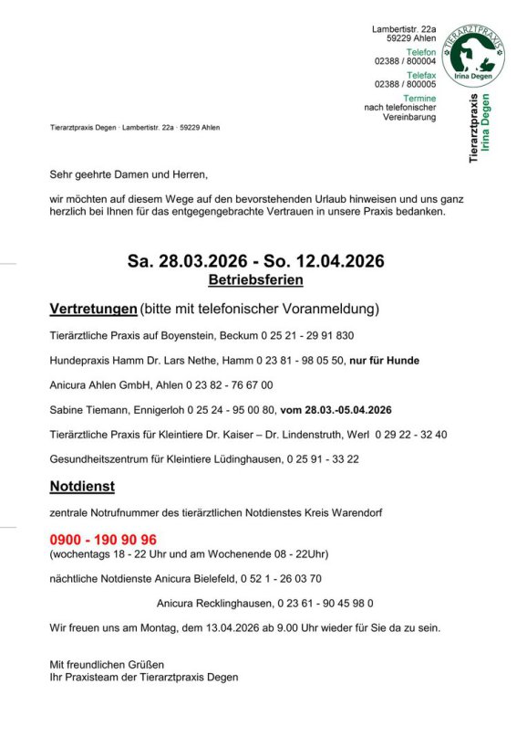tierärztlicher Notdienst Kreis Warendorf